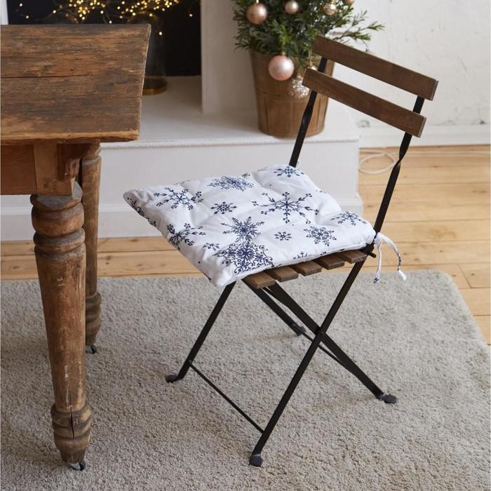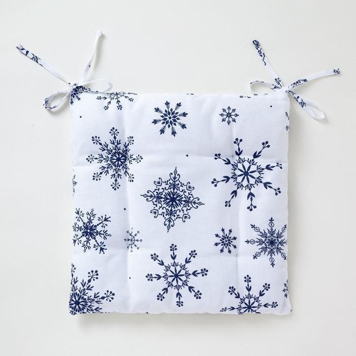 Сидушка на стул «Синие снежинки» 42х42×5 см, 100% хлопок, 164 г/м2