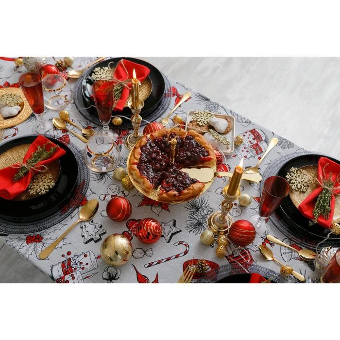Скатерть Доляна «Новый год: Новогоднее настроение» 250×149 см, 100% хлопок, 164 г/м2