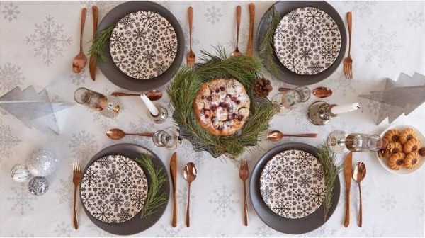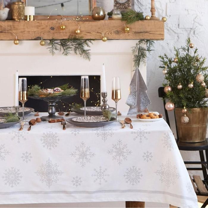 Скатерть «Этель» Серебряные снежинки 149х180см, 100%хл, 190г/м2