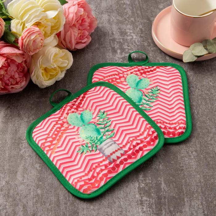 Кухонный набор Доляна «Кактус» прихватка 17×17 см — 2 шт