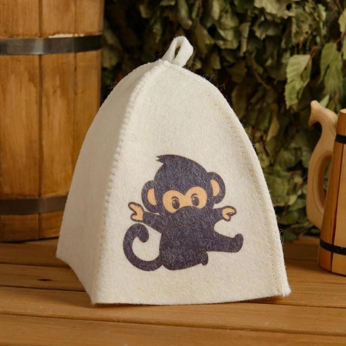 Шапка для бани детская «Обезьянка» с принтом, белая