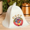 Набор для бани и сауны 5 в 1(сумка,шапка,варежка,коврик,мочалка),с принтом «СССР», белый
