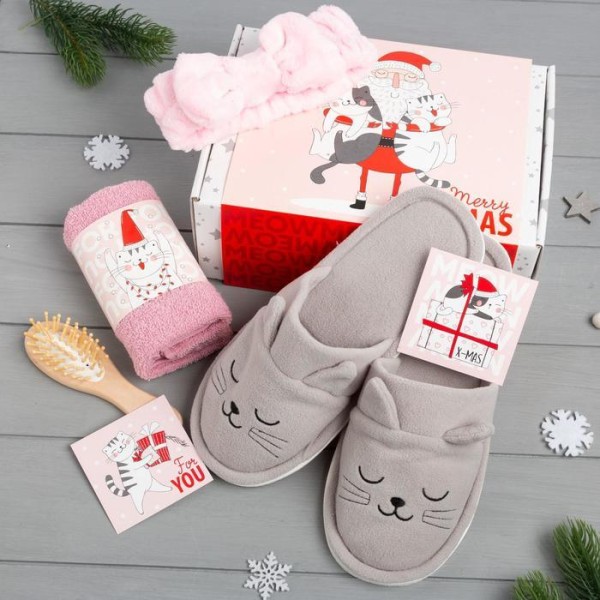 Подарочный набор новогодний «Merry catmas» полотенце и акс