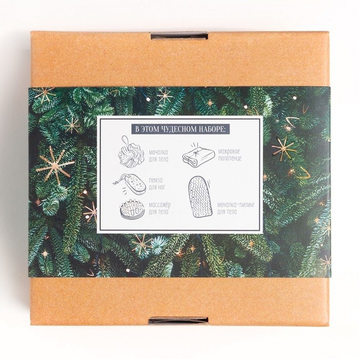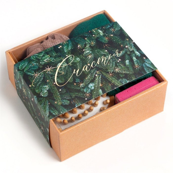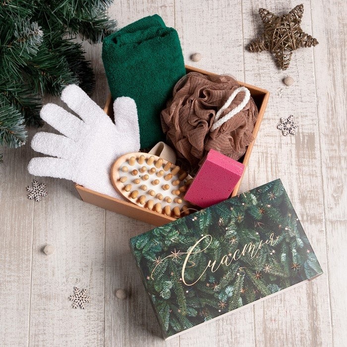 Подарочный набор новогодний «Счастья» полотенце 30×60 см и банные акс. (4 предм)