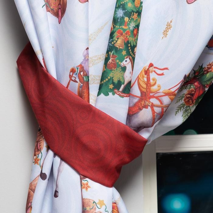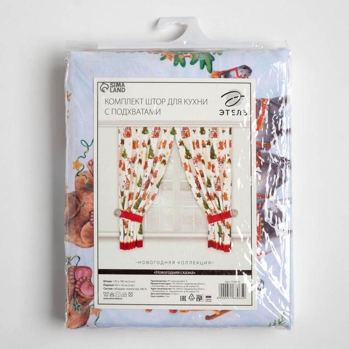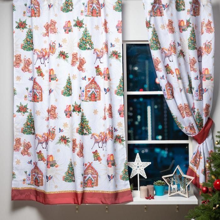 Комплект штор для кухни с подхватами «Новогодняя сказка» 145х180см-2 шт., габардин