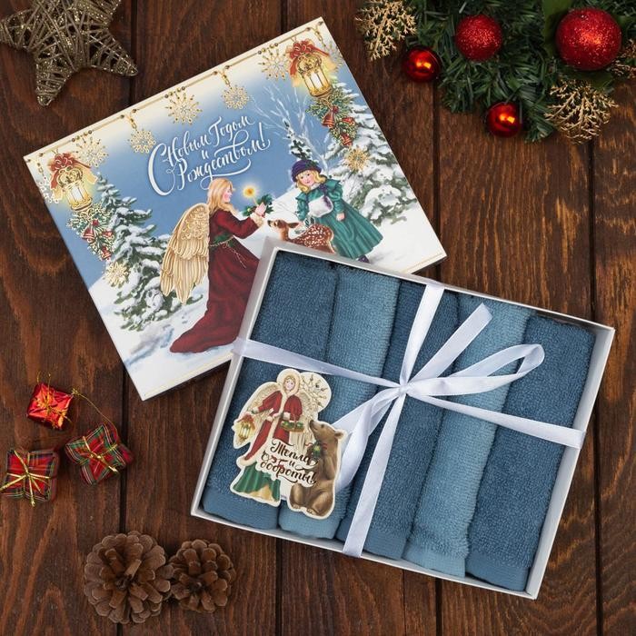 Набор махровых полотенец «С Новым годом и Рождеством» 30×30 см -5шт, 100% хл, 340гр/м2