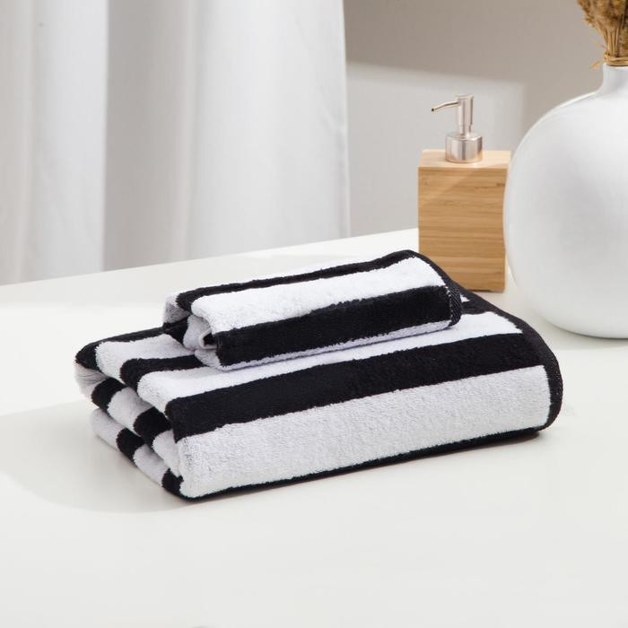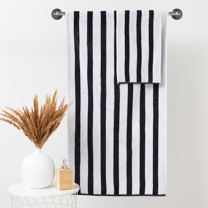 Полотенце махровое Этель ЧБ «Полоски», пестроткань, 30×60 см