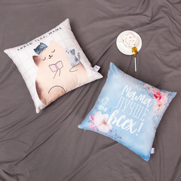 Подушка декоративная Любимая мама, 40×40 см, велюр, 100% п/э