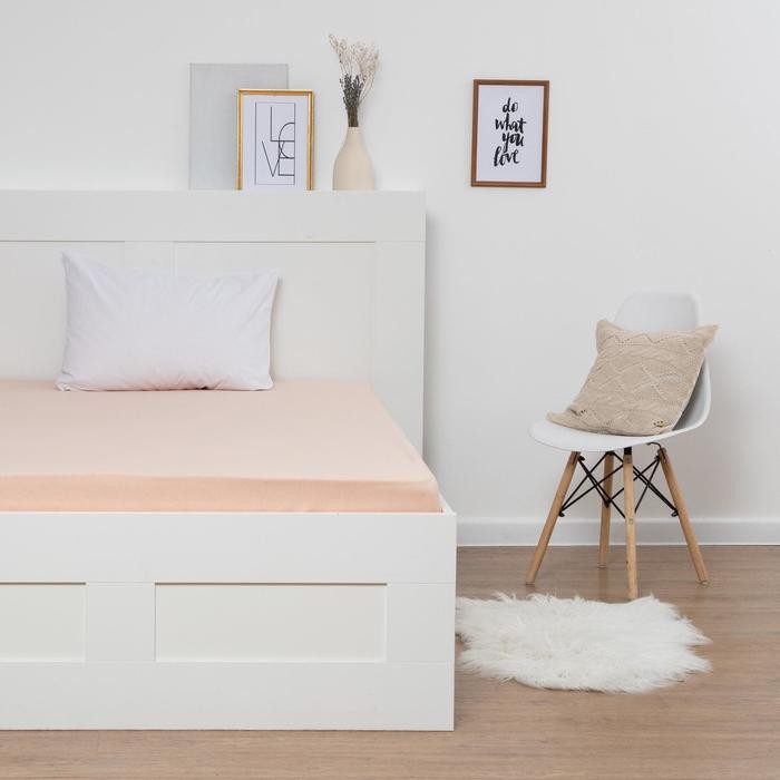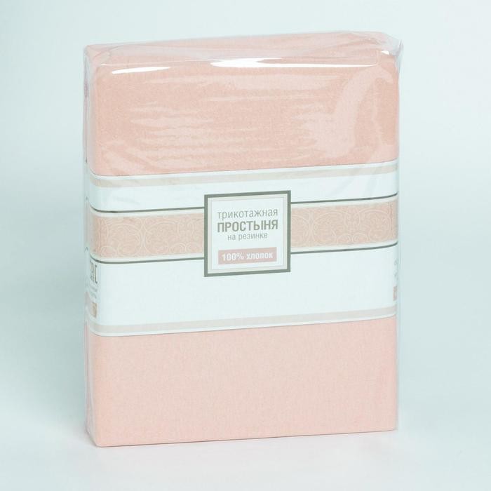 Трикотажная простынь на резинке 160х200х25см, пудровый кулирка