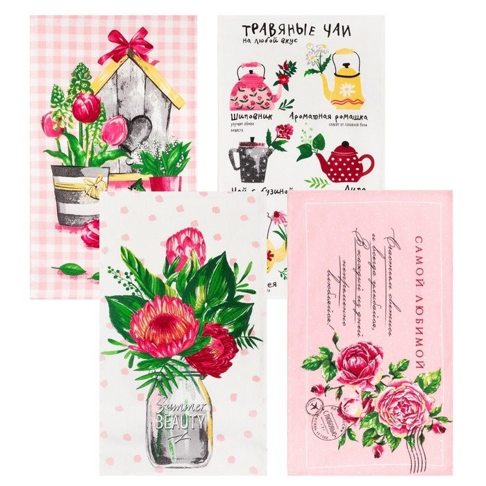 Набор кухонных полотенец Доляна «Самой любимой», 35х60см-4шт, 100% хл