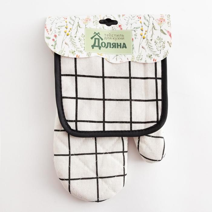 Кухонный набор Доляна «Клетка» цв.белый, прихватка 17*17 см, рукавица 26*16 см,100% п/э