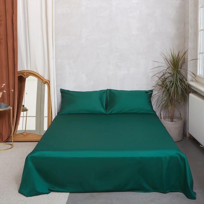 Простыня Этель 150*215 см, цв.изумрудный, 100% хлопок, мако-сатин, 125 г/м²