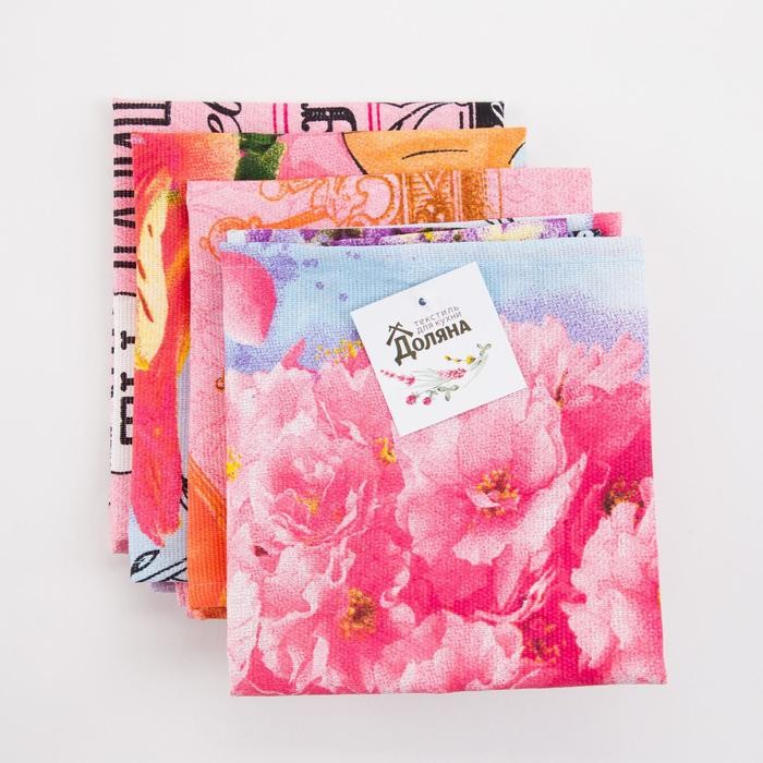 Набор кухонных полотенец Доляна «Любимая мамочка», 35х60см-4шт, 100% хл