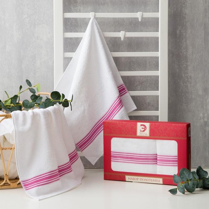 Набор полотенец Этель «Полосы» 2 шт (70×130, 50×90 см) белый/розовый, 100% хлопок, 360г/м² ²