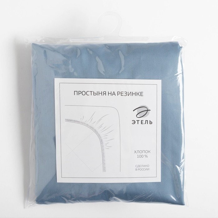 Простыня на резинке Этель 180*200*25 см, цв.небесный, 100% хлопок, мако-сатин, 125 г/м²