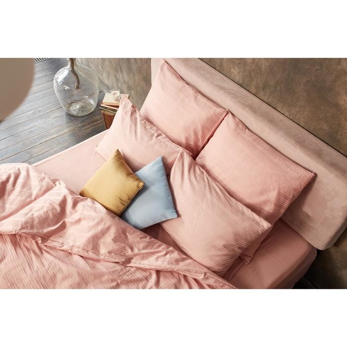 Материал наволочек и пододеяльника: страйп-сатин. Материал простыни: мако-сатин.