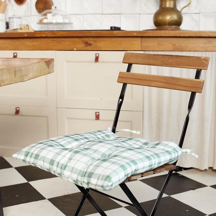 Сидушка на стул «Этель"Eucalyptus (клетка) 42х42см, 100% хл, саржа 190 г/м2