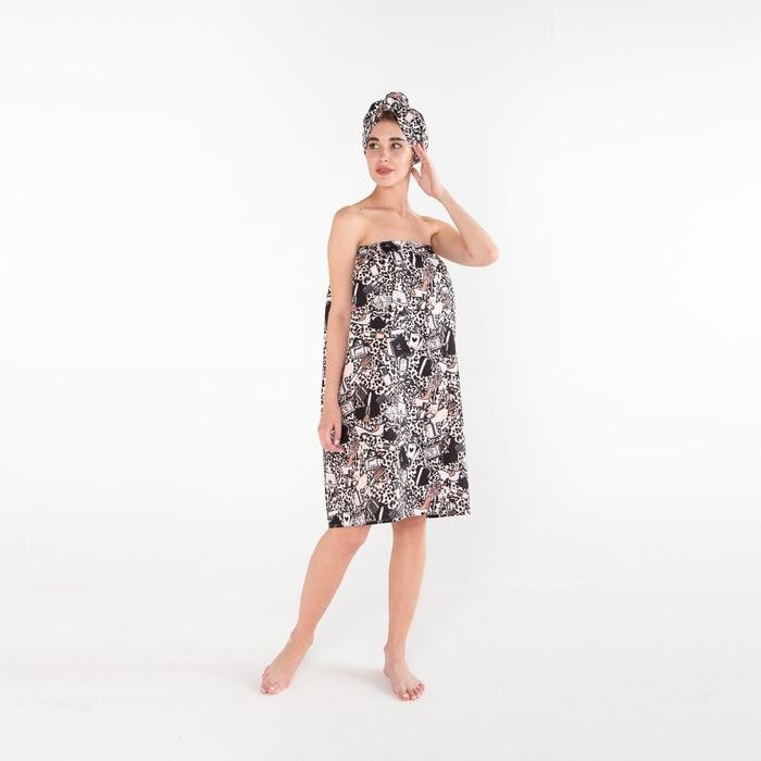 Набор для сауны Этель «Леопард» парео 80*144 см + чалма, вафля 200г/м2, 100% хл